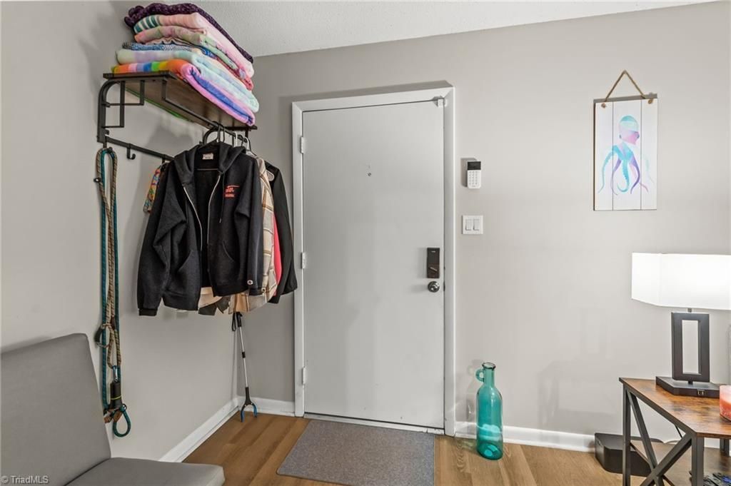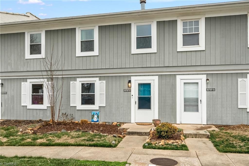 Beautifully maintained - 2 bed 2.5 bath condo conveniently located off Guilford College Road near tons of shopping and dining w/ easy highway access. Unit F - Features newer flooring throughout, updated bathroom vanities/toilets/mirrors/lights/exhaust fans, and ceiling fans in bedrooms. Sleek and modern kitchen countertops/light fixture, painted cabinets and storm door. Other features include gorgeous custom stone fireplace w/ live edge wood mantle, and Pella sliding glass doors that leads to spacious back patio w/ garden space, privacy fence, storage room and gate that leads to open area and swing set. New Windows 2023, 2022 new water heater. All kitchen appliances remain, to include microwave. Low maintenance living with HOA covering landscaping, water, trash, common area, play area, and more!